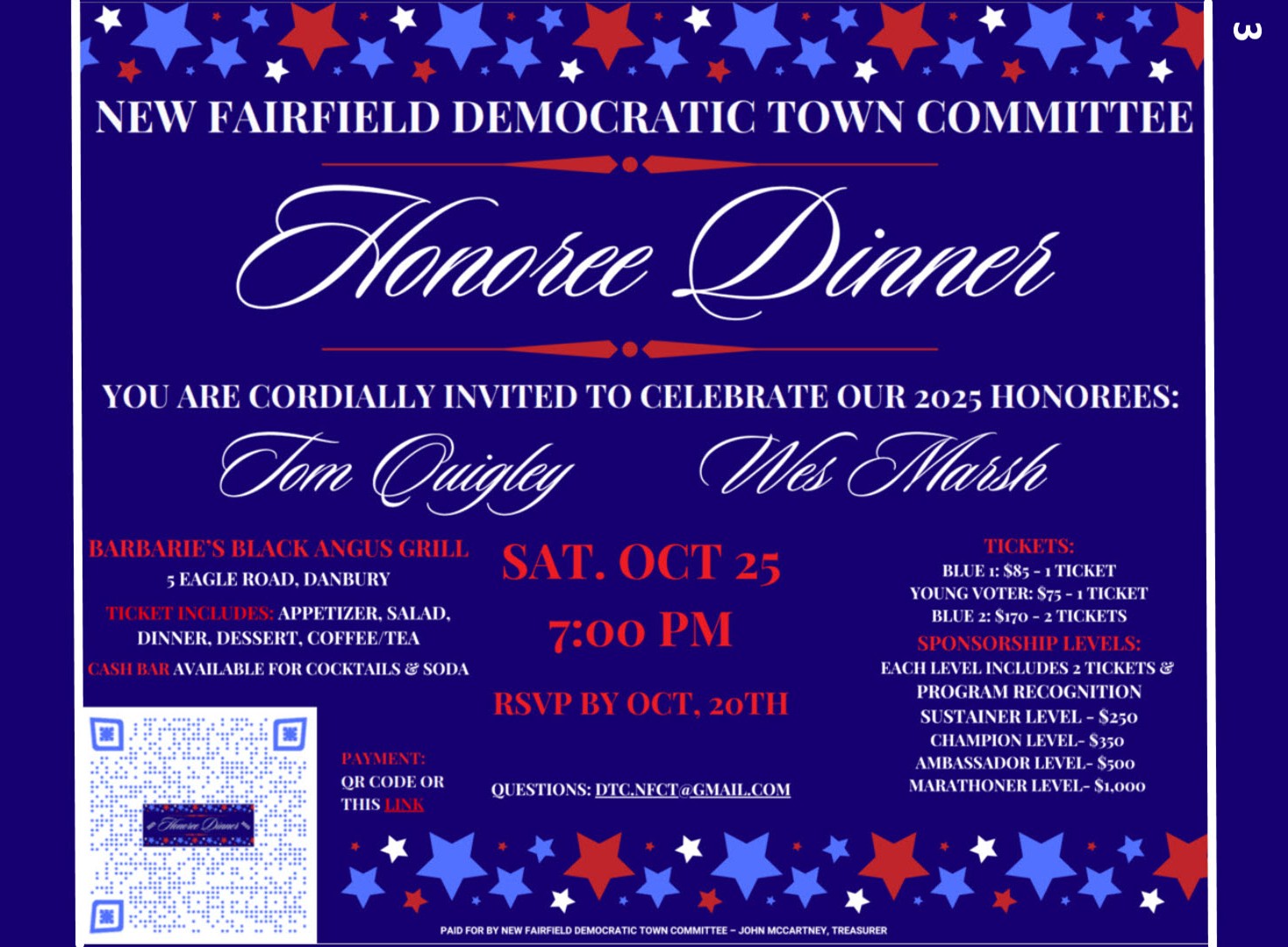 Paid for by New Fairfield Democratic Town Committee – John McCartney, Treasurer